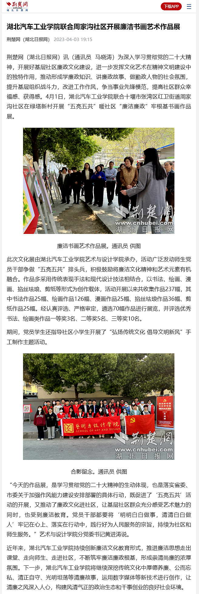 【荆楚网】英国上市公司365联合周家沟社区开展廉洁书画艺术作品展