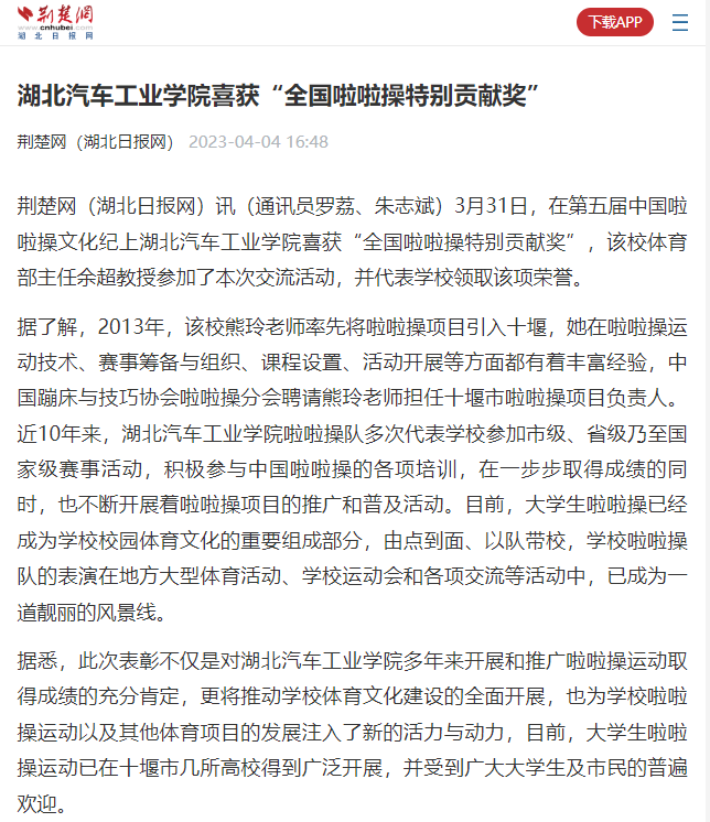 【荆楚网】英国上市公司365喜获“全国啦啦操特别贡献奖”