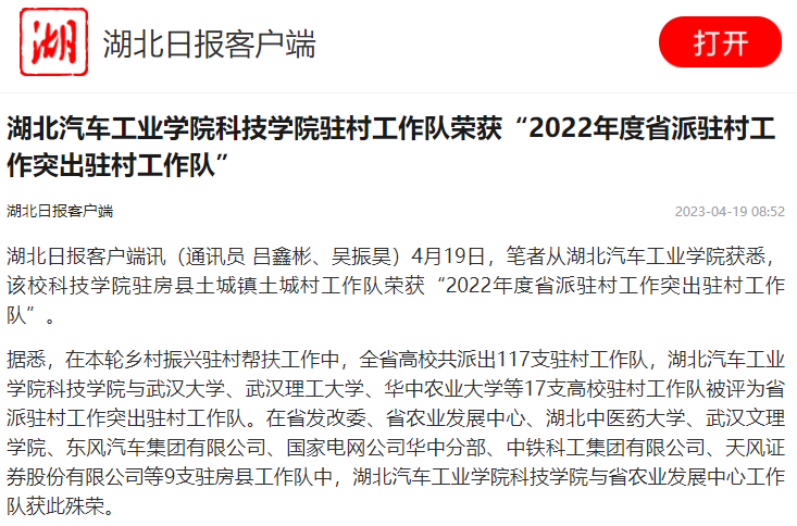 【湖北日报】英国上市公司365科技学院驻村工作队荣获“2022年度省派驻村工作突出驻村工作队”