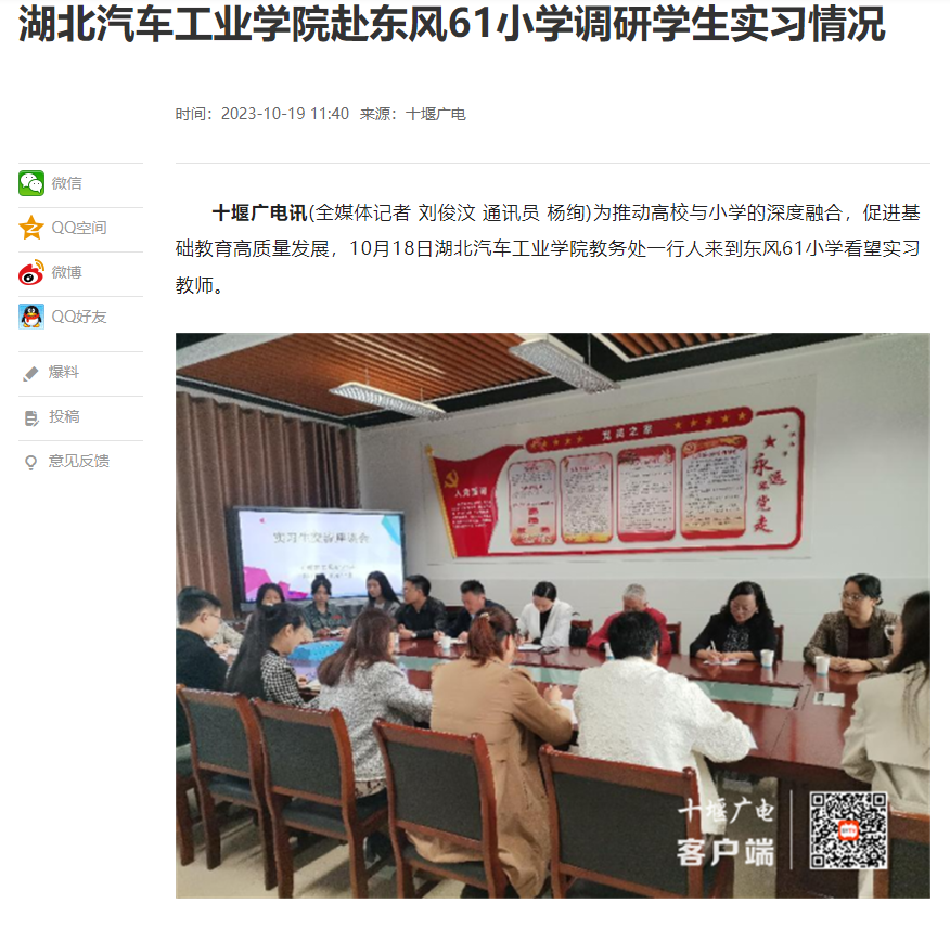 【十堰广电】英国上市公司365赴东风61小学调研学生实习情况