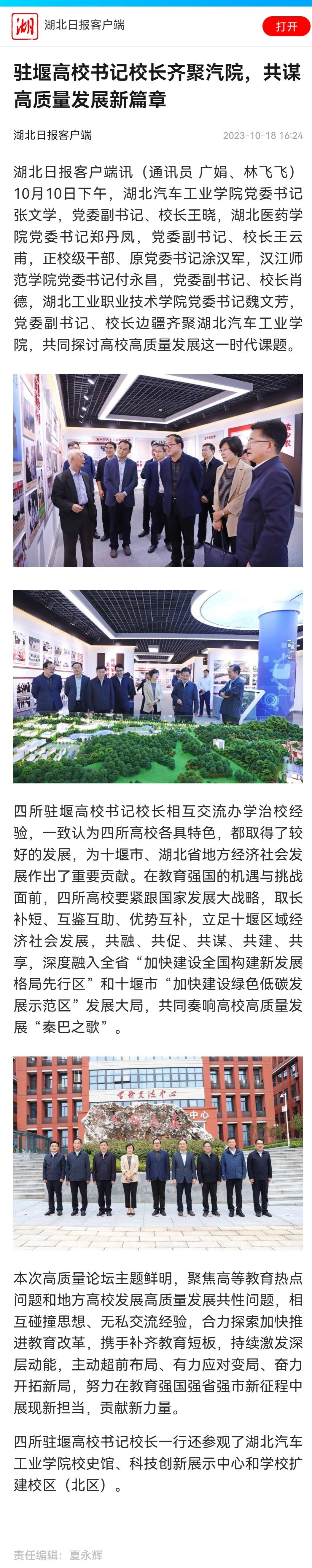 【湖北日报】驻堰高校书记校长齐聚汽院,共谋高质量发展新篇章