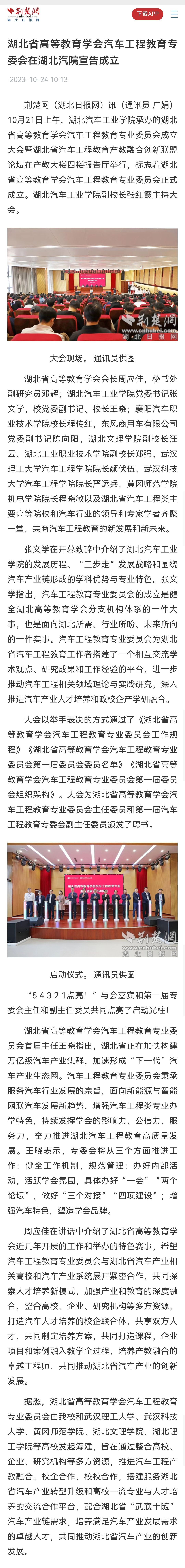 【荆楚网】湖北省高等教育学会汽车工程教育专委会在湖北汽院宣告成立
