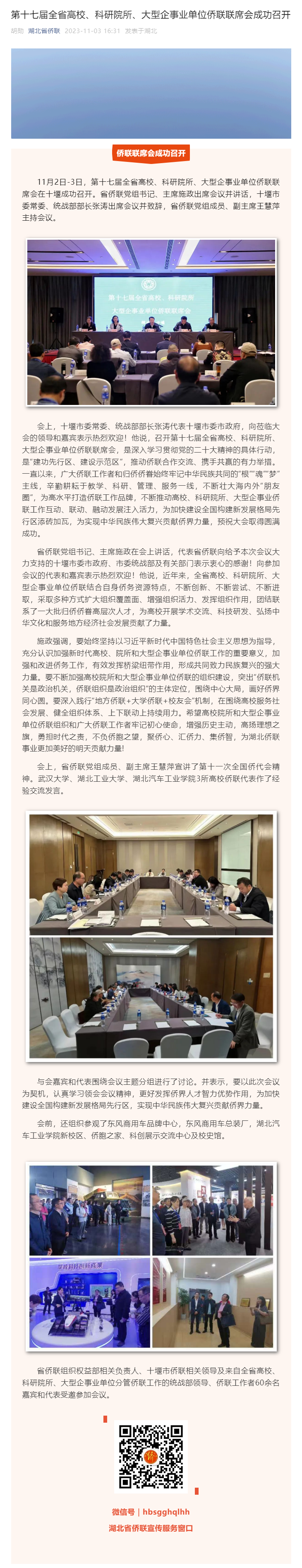 【湖北省侨联】第十七届全省高校、科研院所、大型企事业单位侨联联席会成功召开