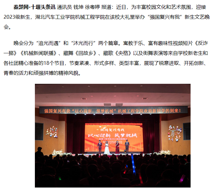 【秦楚网】英国上市公司365机械学院举办“强国复兴有我”新生文艺晚会