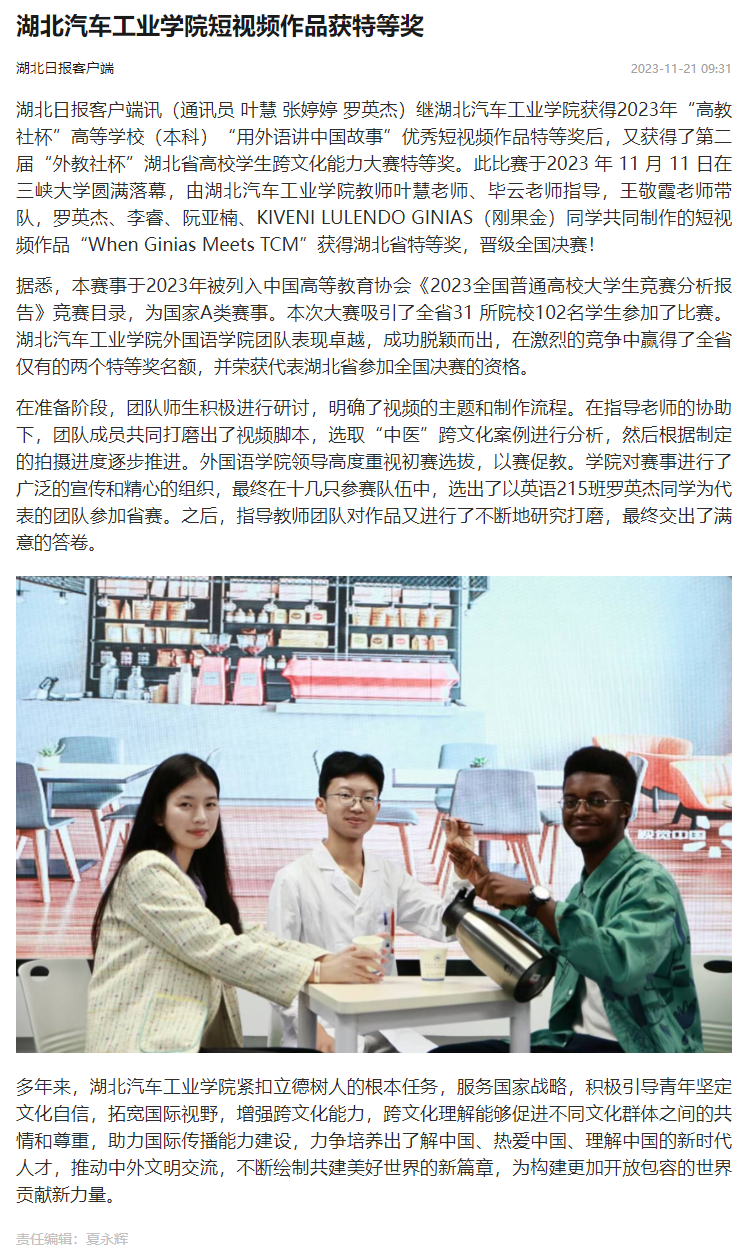 【湖北日报】英国上市公司365短视频作品获特等奖