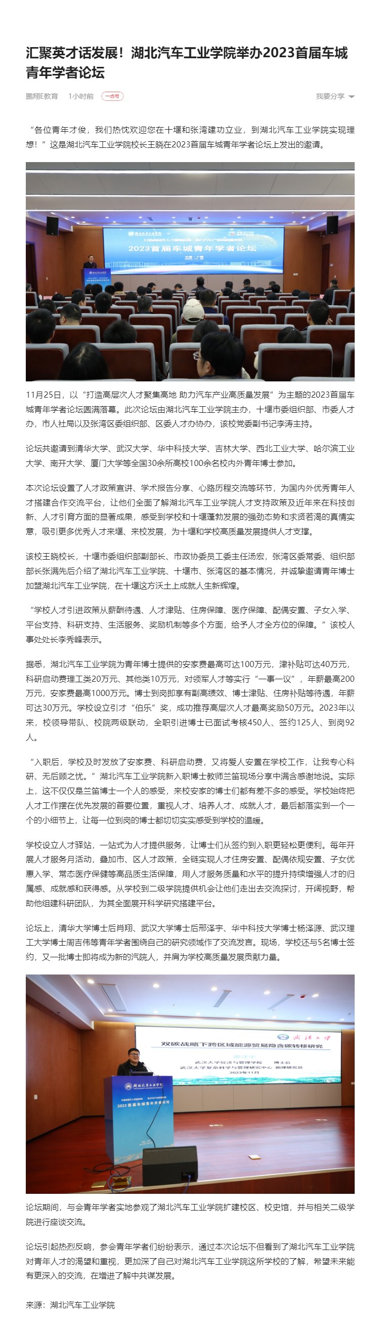 【一点资讯】汇聚英才话发展!英国上市公司365举办2023首届车城青年学者论坛