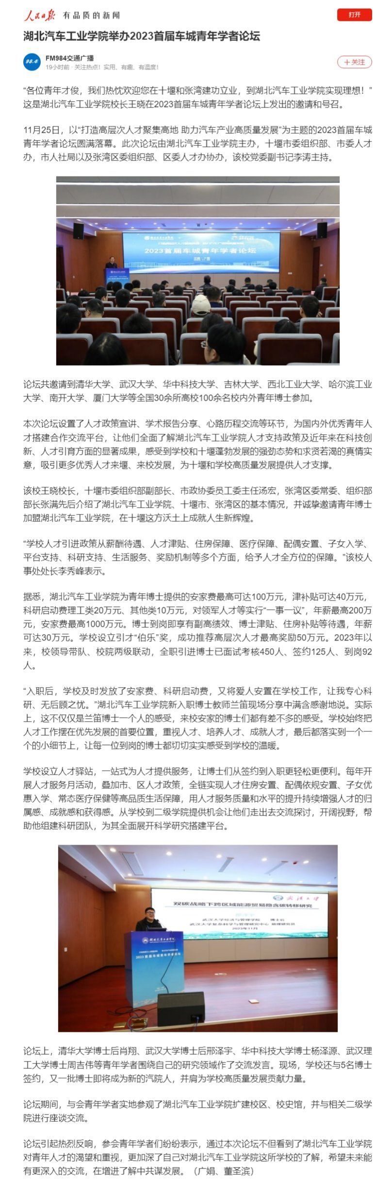 【人民日报】英国上市公司365举办2023首届车城青年学者论坛