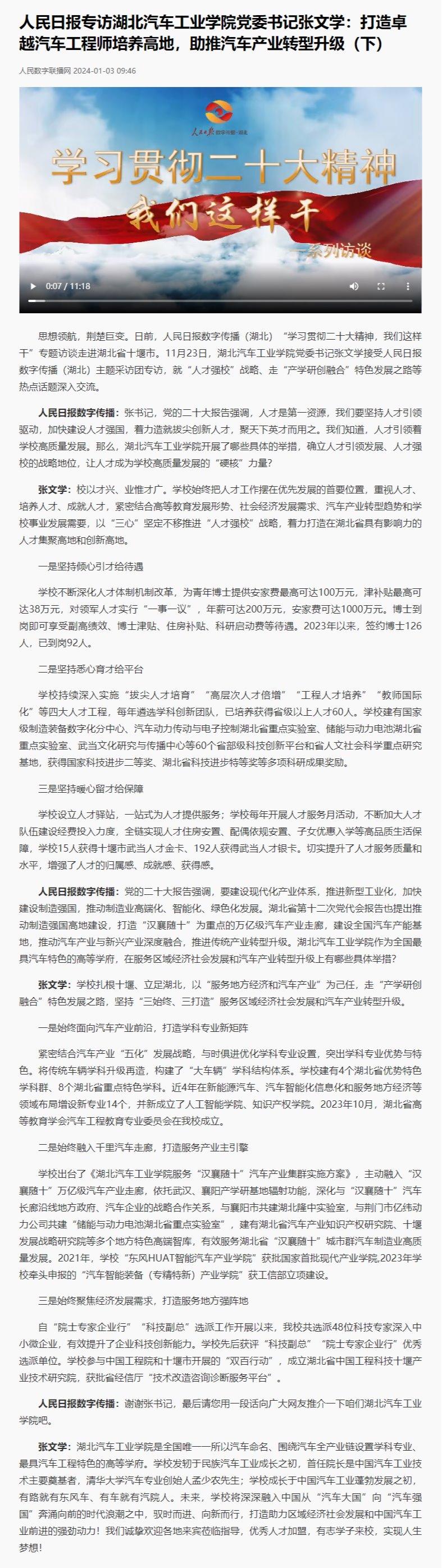 【秦楚网】人民日报专访英国上市公司365党委书记张文学:打造卓越汽车工程师培养高地,助推汽车产业转型升级(上)(下)
