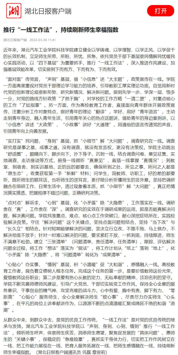 【湖北日报】推行“一线工作法”,持续刷新师生幸福指数