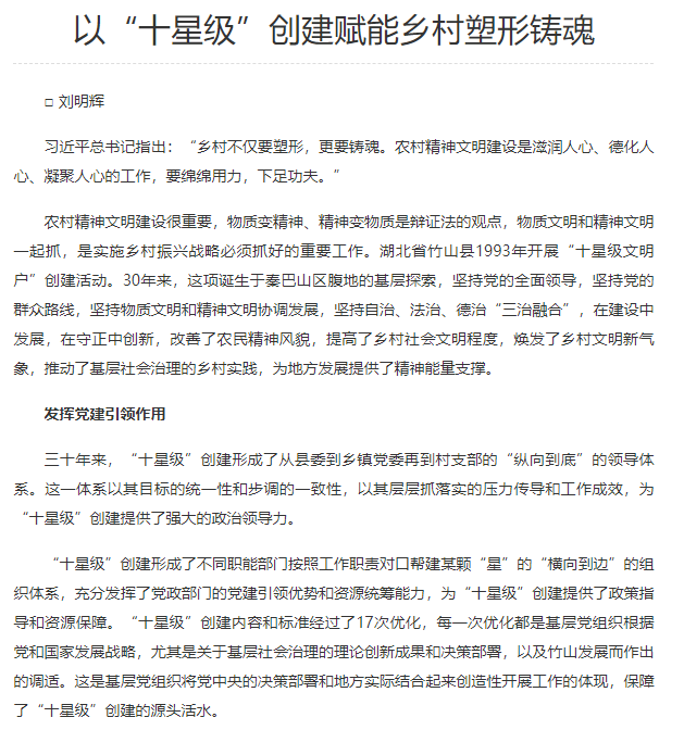 【湖北日报】以“十星级”创建赋能乡村塑形铸魂