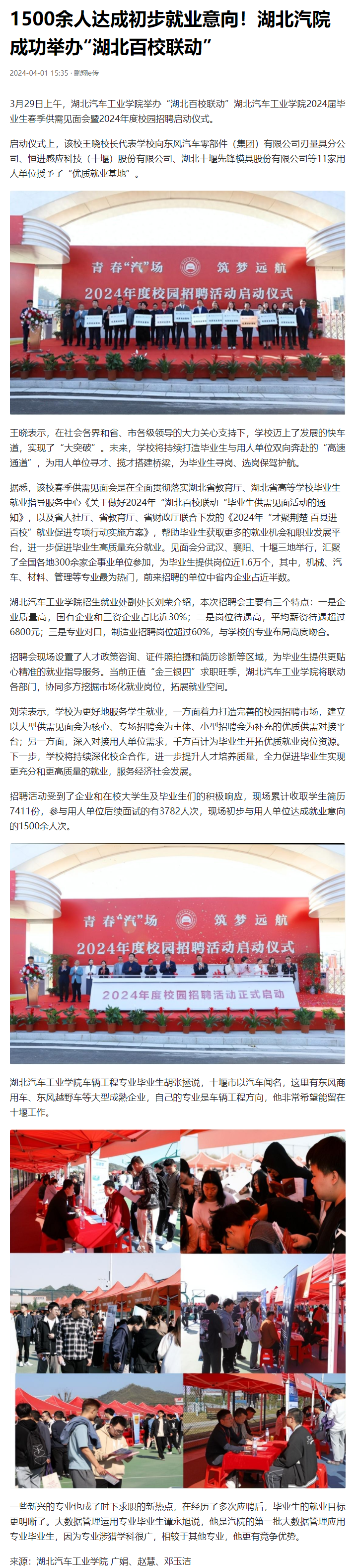 【今日头条】1500余人达成初步就业意向!湖北汽院成功举办“湖北百校联动”