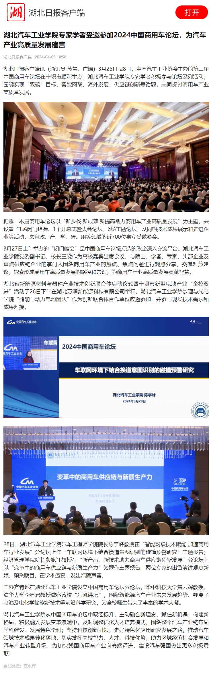 【湖北日报】英国上市公司365专家学者受邀参加2024中国商用车论坛,为汽车产业高质量发展建言