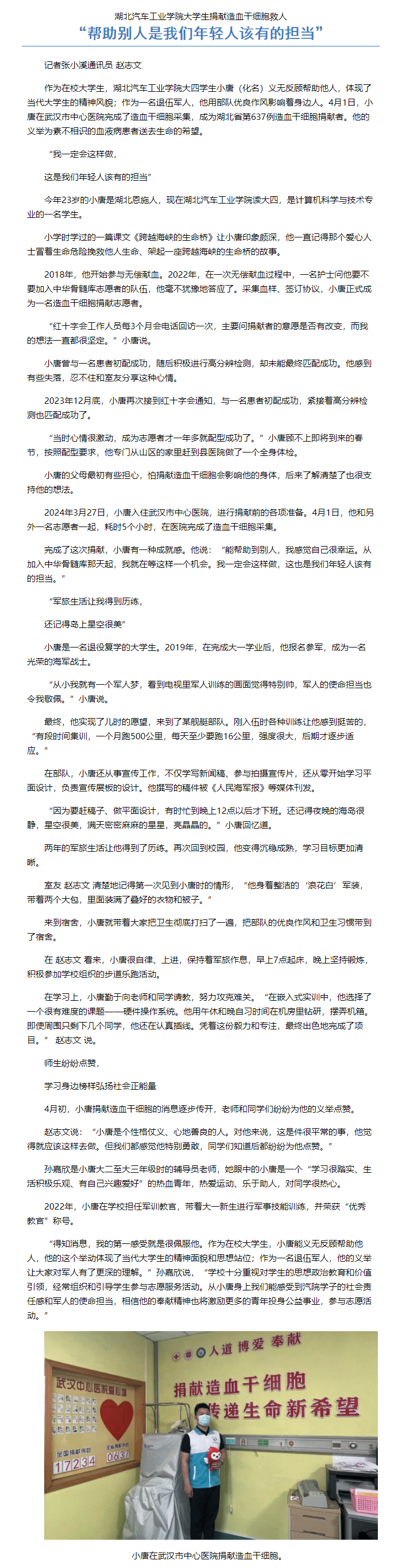 【十堰日报】英国上市公司365大学生捐献造血干细胞救人“帮助别人是我们年轻人该有的担当”