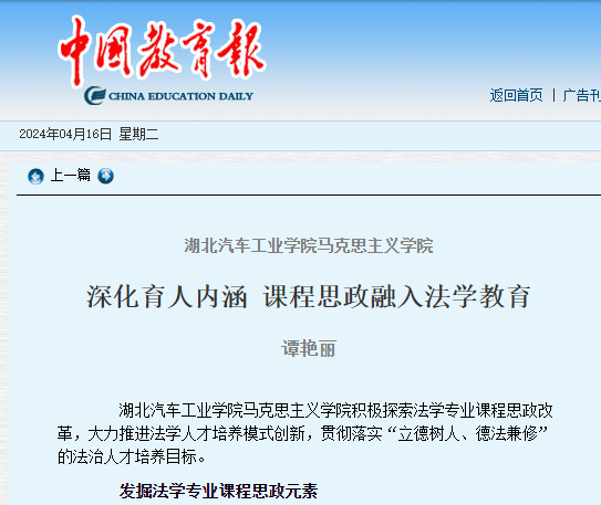 【中国教育报】英国上市公司365马克思主义学院:深化育人内涵 课程思政融入法学教育