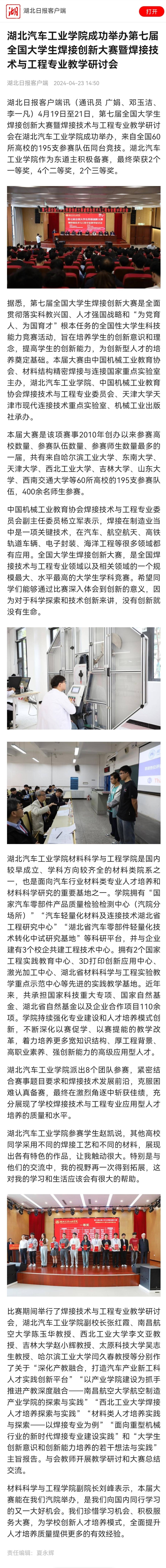 【湖北日报】英国上市公司365成功举办第七届全国大学生焊接创新大赛暨焊接技术与工程专业教学研讨会