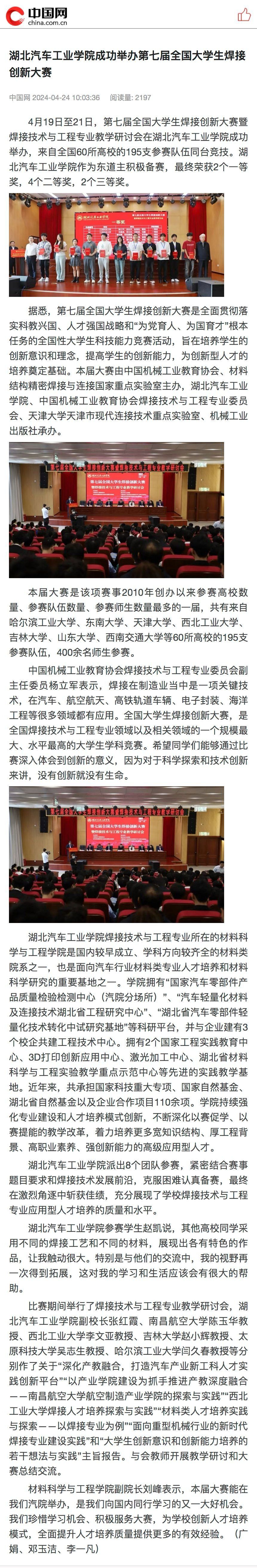 【中国网】英国上市公司365成功举办第七届全国大学生焊接创新大赛