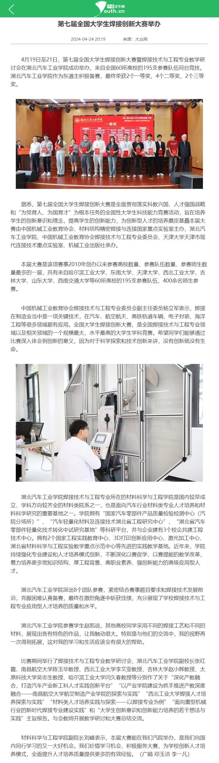 【中国青年网】第七届全国大学生焊接创新大赛举办