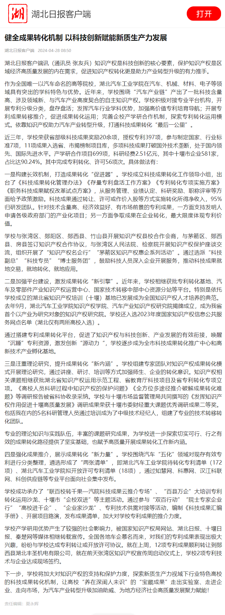 【湖北日报】健全成果转化机制 以科技创新赋能新质生产力发展
