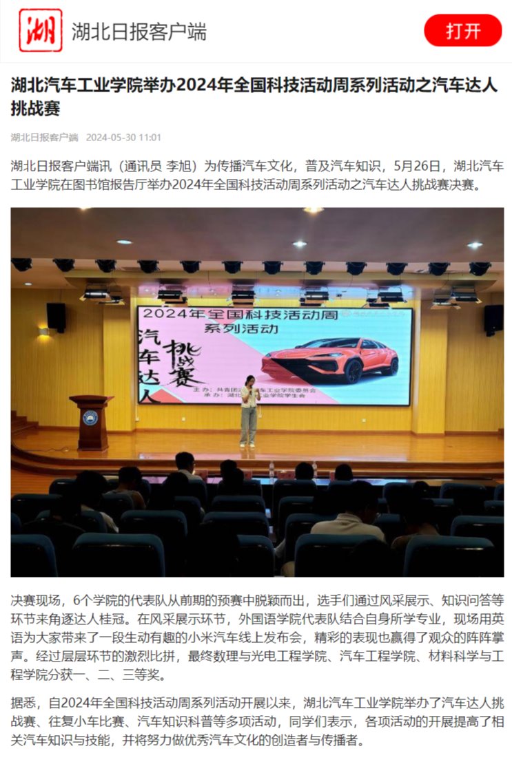 【湖北日报】英国上市公司365举办2024年全国科技活动周系列活动之汽车达人挑战赛
