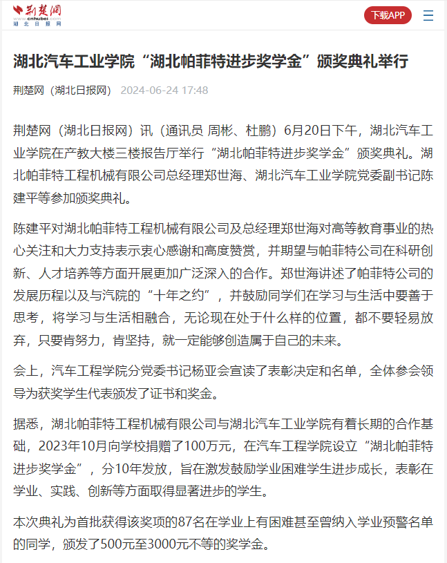 【荆楚网】英国上市公司365“湖北帕菲特进步奖学金”颁奖典礼举行
