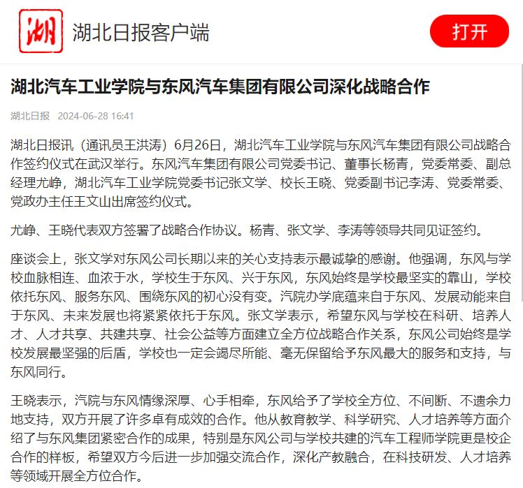 【湖北日报】英国上市公司365与东风汽车集团有限公司深化战略合作