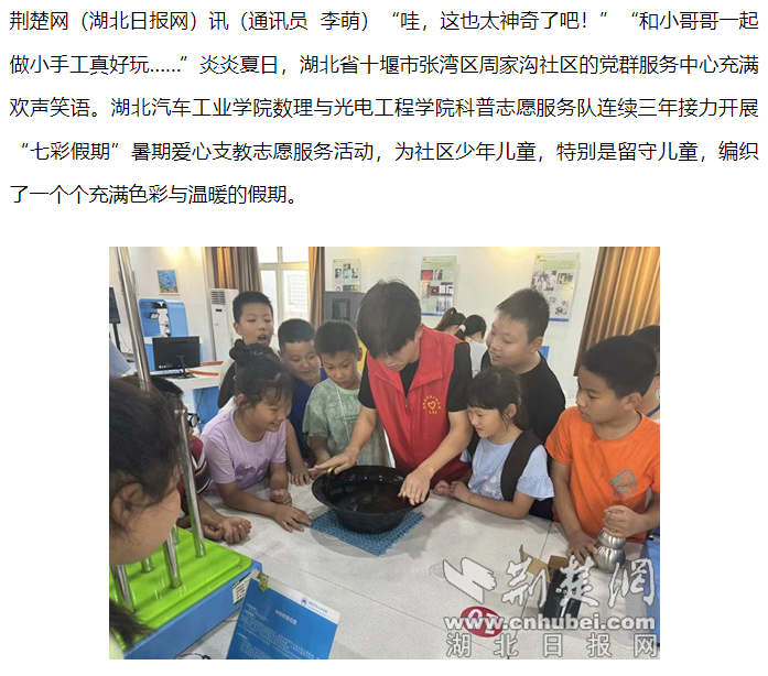 【荆楚网】湖北汽院数理与光电工程学院科普志愿服务队:三年爱心接力 筑梦七彩假期