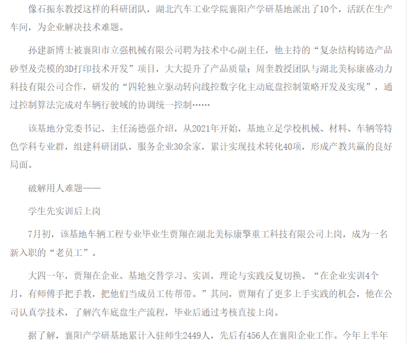 【湖北教育新闻】襄阳产学研基地瞄准汽车产业 让技术服务于企业 让学生活跃在车间