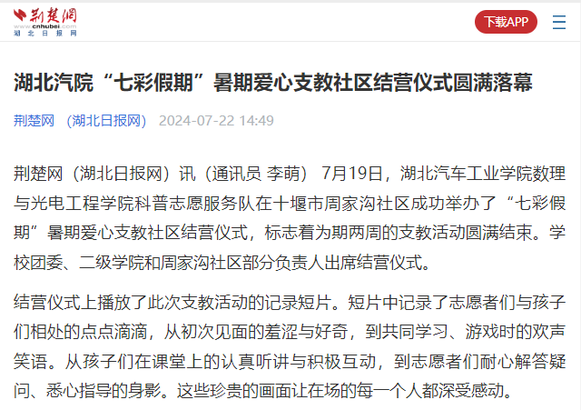 【荆楚网】湖北汽院“七彩假期”暑期爱心支教社区结营仪式圆满落幕