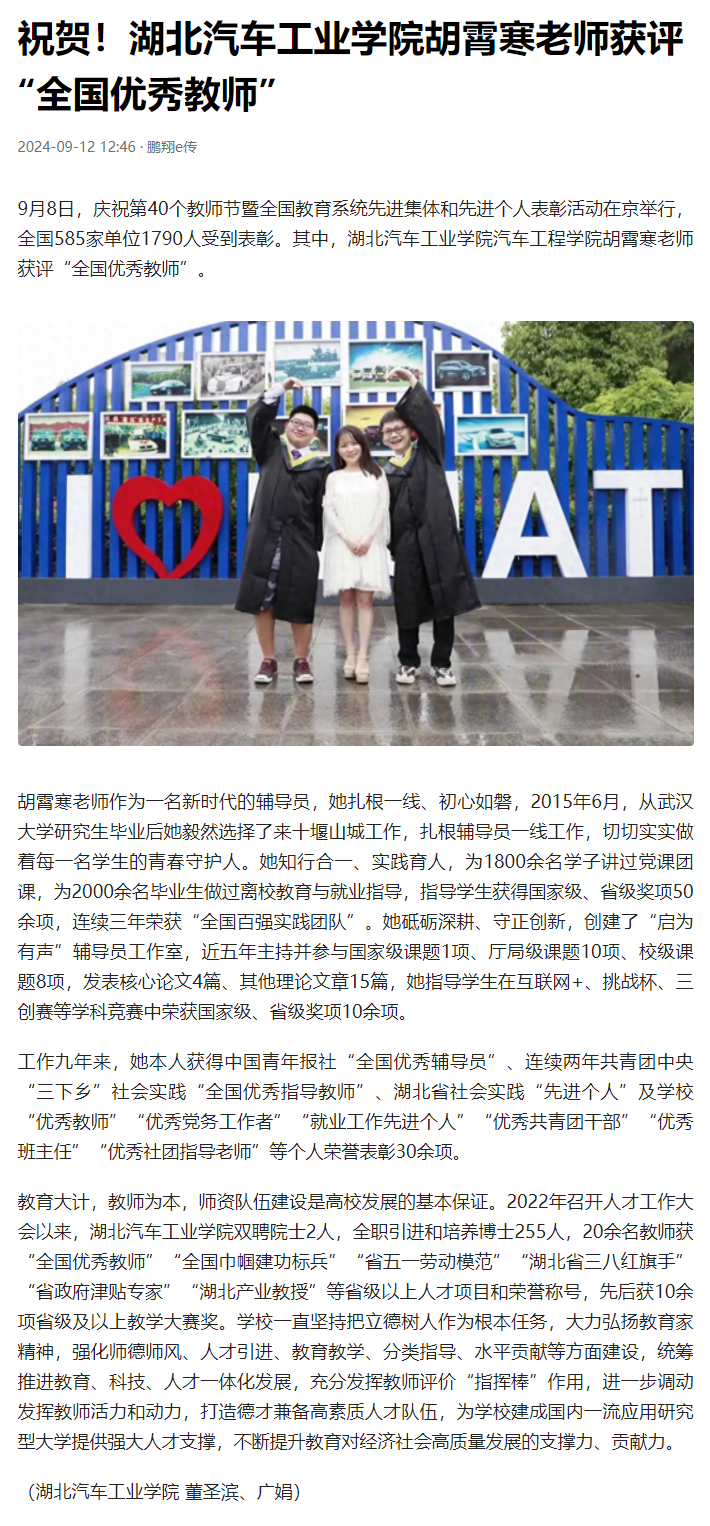 【今日头条】祝贺!英国上市公司365胡霄寒老师获评“全国优秀教师”