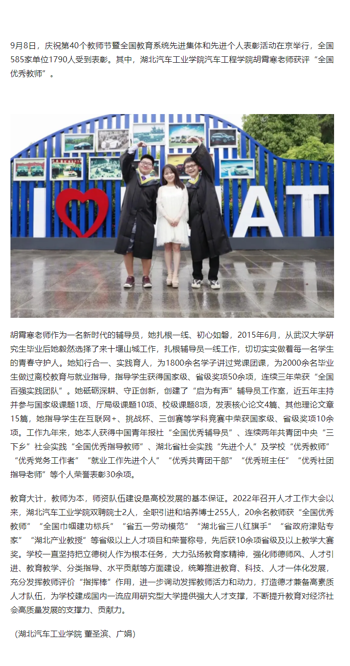 【一点资讯】祝贺!英国上市公司365胡霄寒老师获评“全国优秀教师”