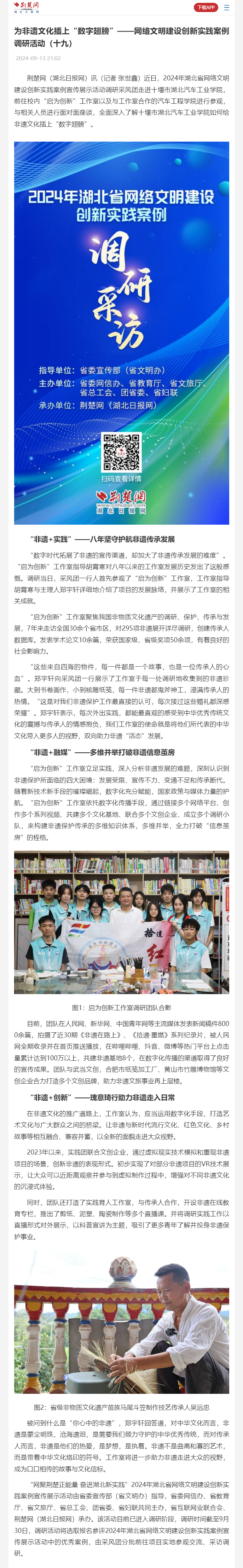 【荆楚网】为非遗文化插上“数字翅膀”——网络文明建设创新实践案例调研活动(十九)