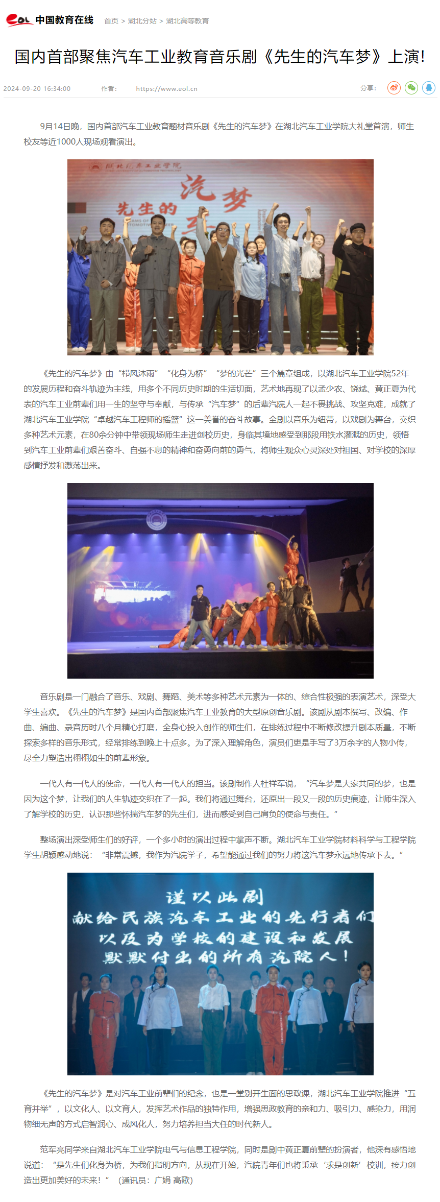 【中国教育在线】国内首部聚焦汽车工业教育音乐剧《先生的汽车梦》上演!