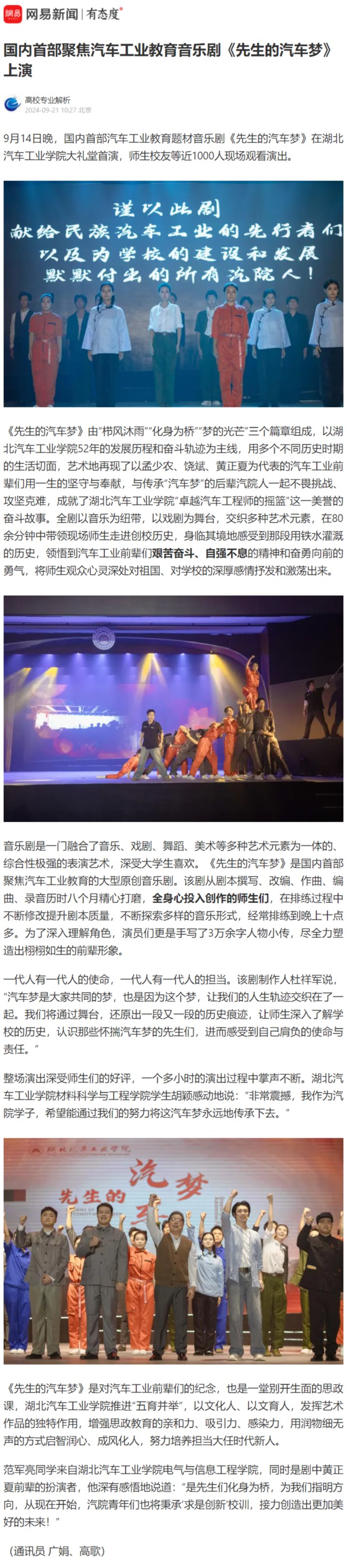 【网易】国内首部聚焦汽车工业教育音乐剧《先生的汽车梦》上演