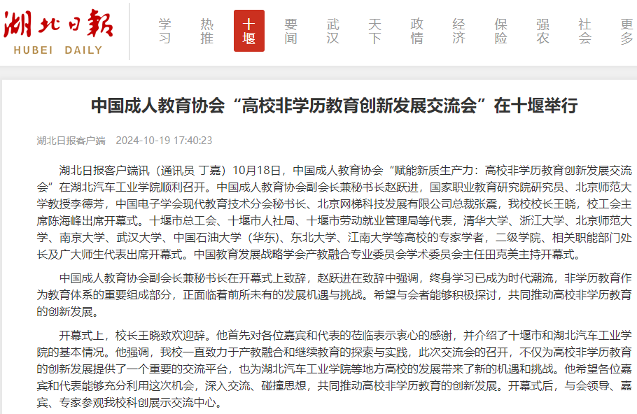 【湖北日报】中国成人教育协会“高校非学历教育创新发展交流会”在十堰举行