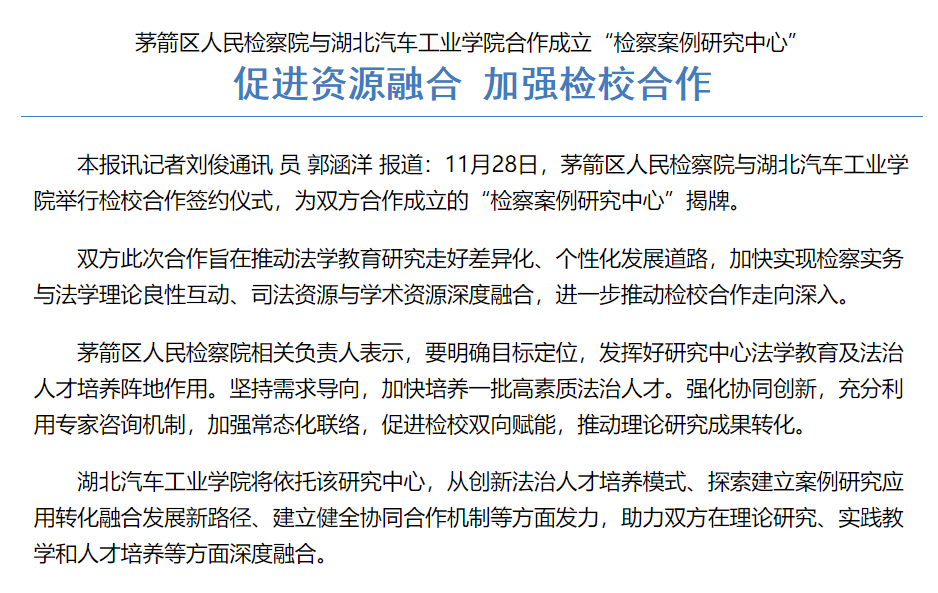 【十堰日报】茅箭区人民检察院与英国上市公司365合作成立“检察案例研究中心”促进资源融合 加强检校合作