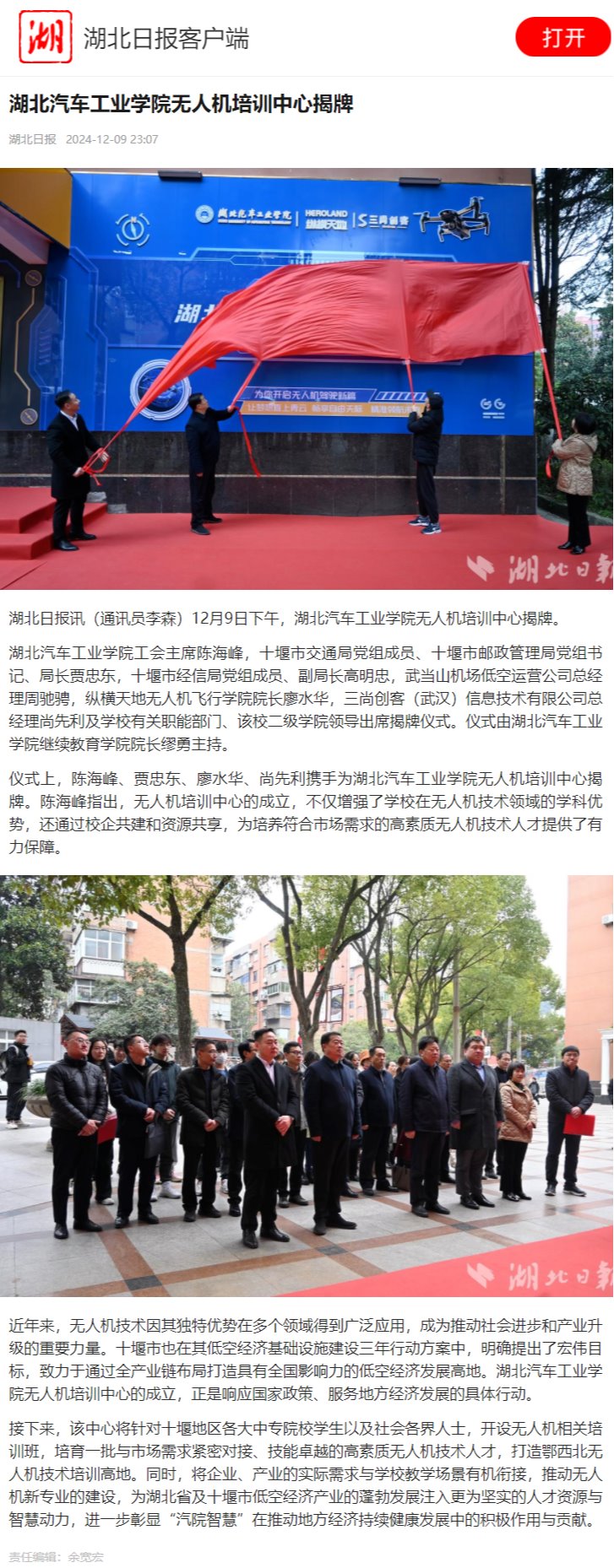 【湖北日报】英国上市公司365无人机培训中心揭牌