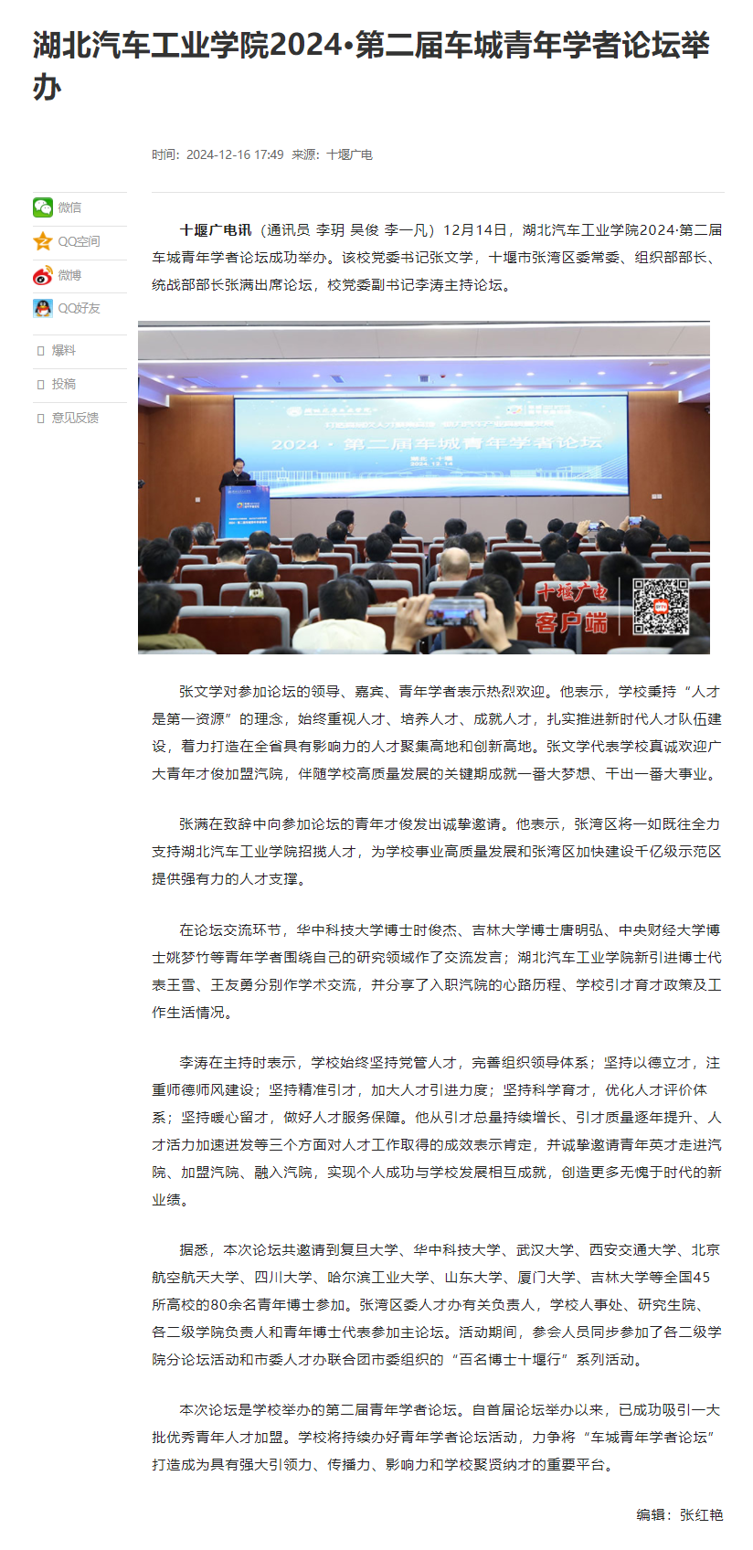 【十堰广电网】英国上市公司3652024·第二届车城青年学者论坛举办