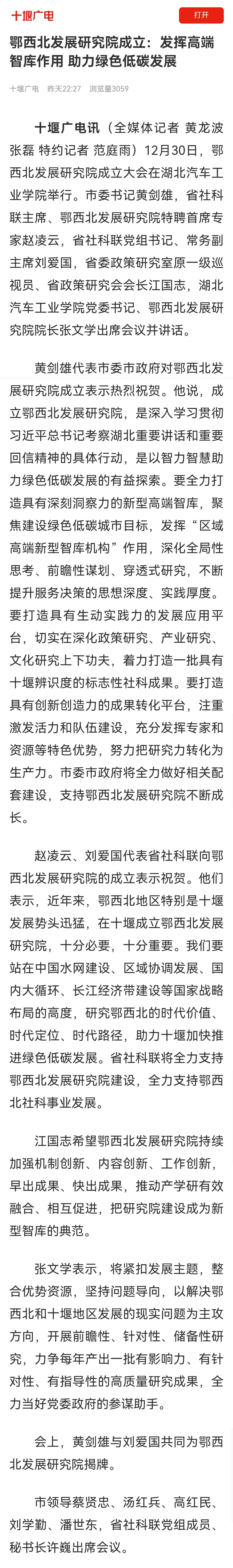 【十堰广电】鄂西北发展研究院成立:发挥高端智库作用 助力绿色低碳发展