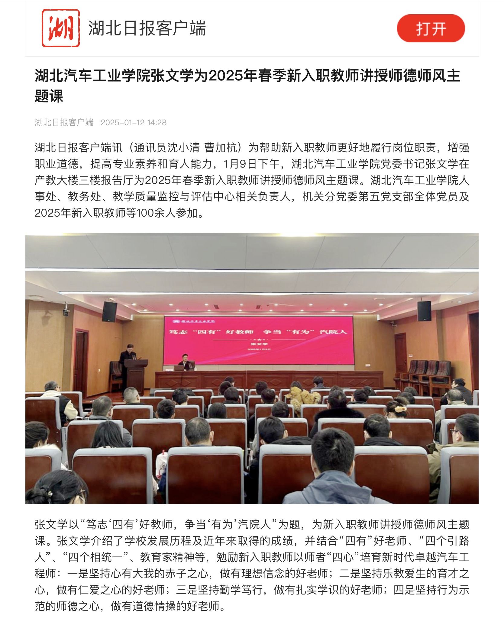 【湖北日报】英国上市公司365张文学为2025年春季新入职教师讲授师德师风主题课