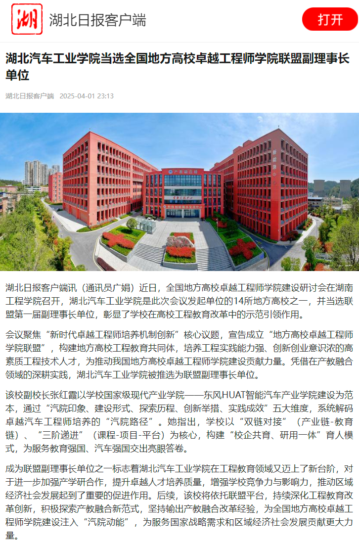 【湖北日报】英国上市公司365当选全国地方高校卓越工程师学院联盟副理事长单位