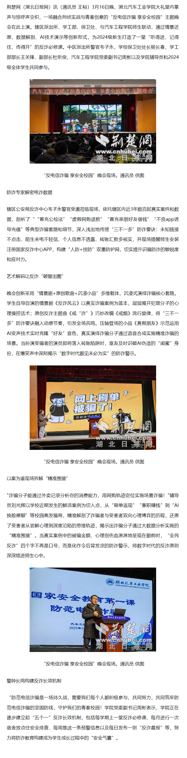 【荆楚网】湖北汽院:警校联动 点亮防诈安全之夜