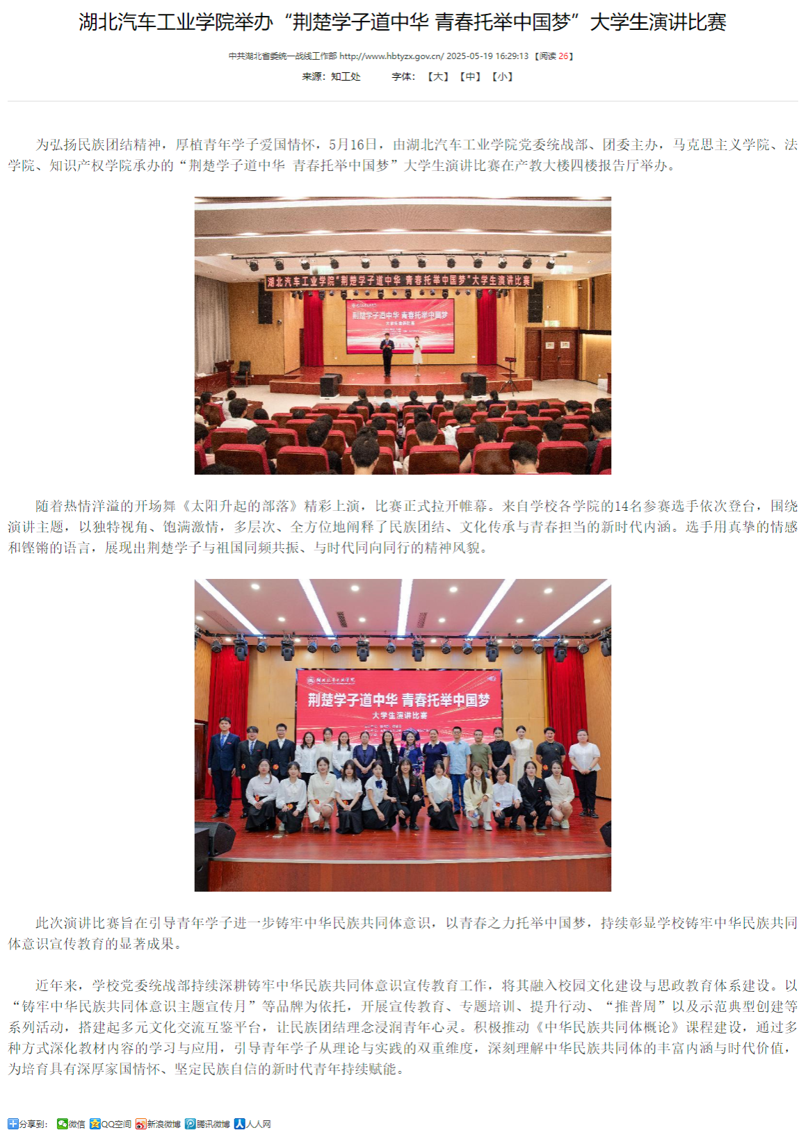 【中共湖北省委统一战线工作部】英国上市公司365举办“荆楚学子道中华 青春托举中国梦”大学生演讲比赛