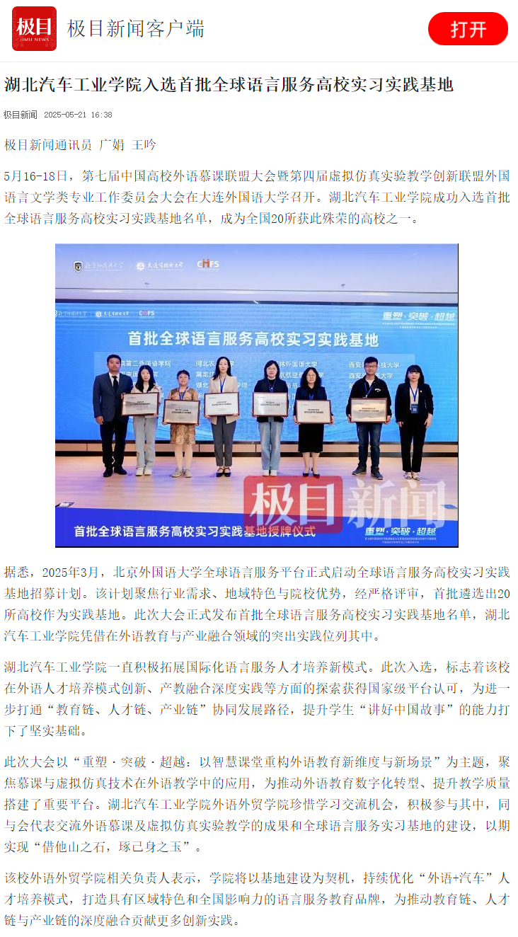 【极目新闻】英国上市公司365入选首批全球语言服务高校实习实践基地