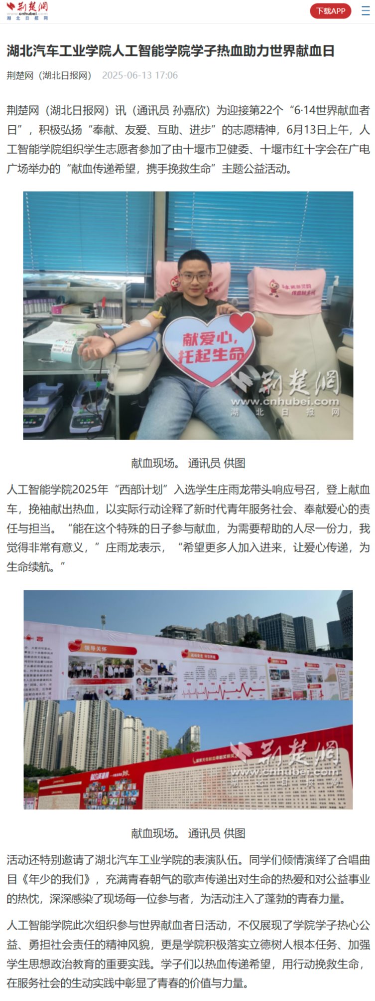 【荆楚网】英国上市公司365人工智能学院学子热血助力世界献血日
