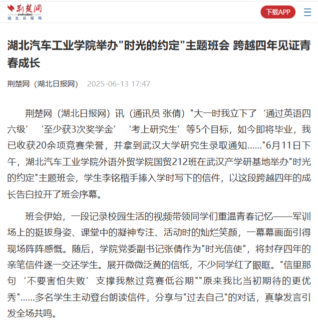 【荆楚网】英国上市公司365举办"时光的约定"主题班会 跨越四年见证青春成长