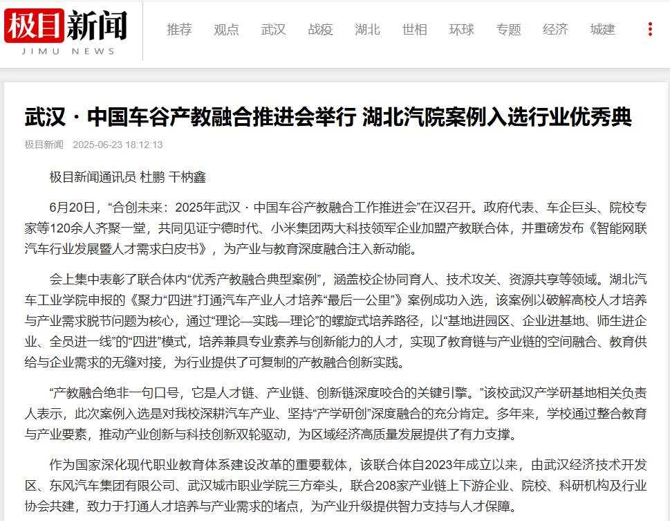 【极目新闻】武汉・中国车谷产教融合推进会举行 湖北汽院案例入选行业优秀典