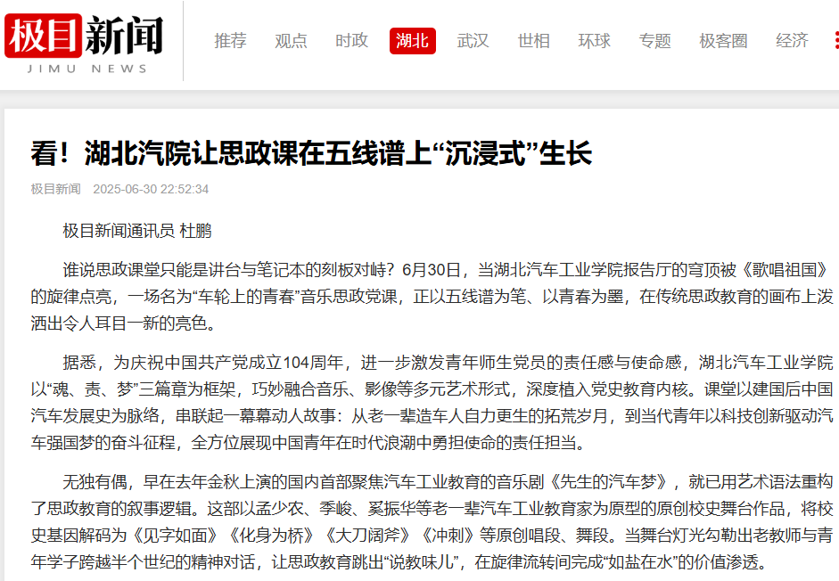 【极目新闻】看!湖北汽院让思政课在五线谱上“沉浸式”生长