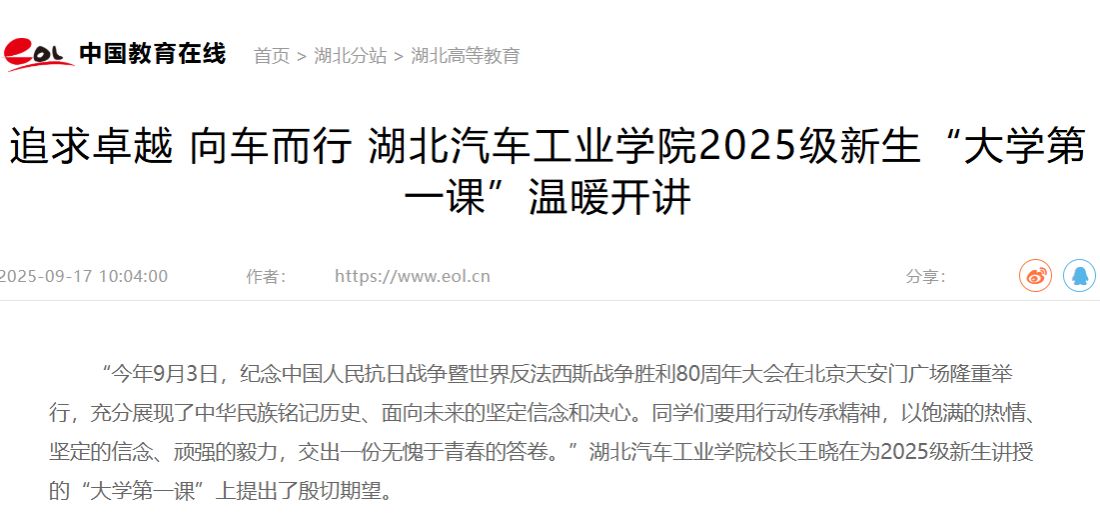 【中国教育在线】追求卓越 向车而行 英国上市公司3652025级新生“大学第一课”温暖开讲
