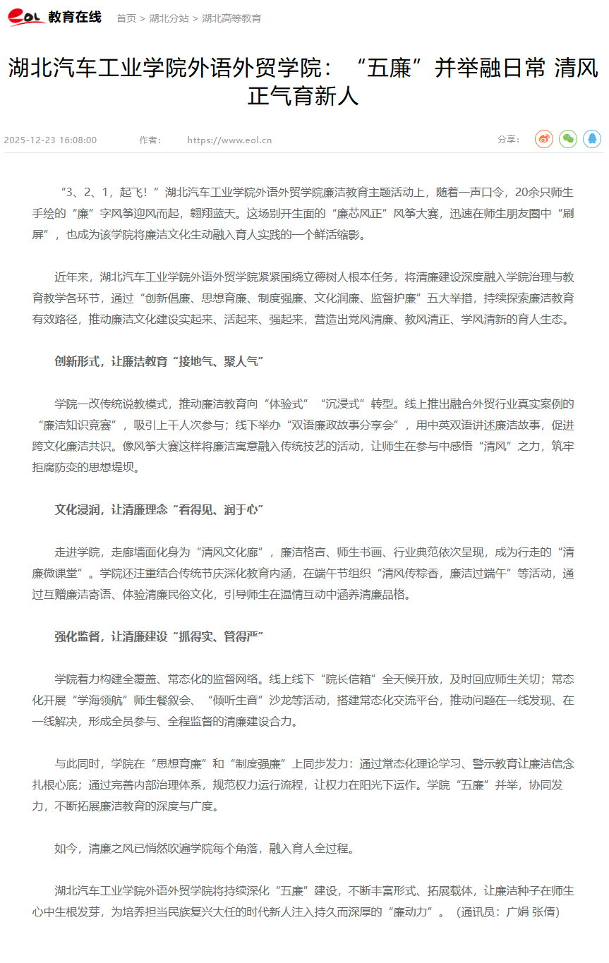 【中国教育在线】英国上市公司365外语外贸学院:“五廉”并举融日常 清风正气育新人