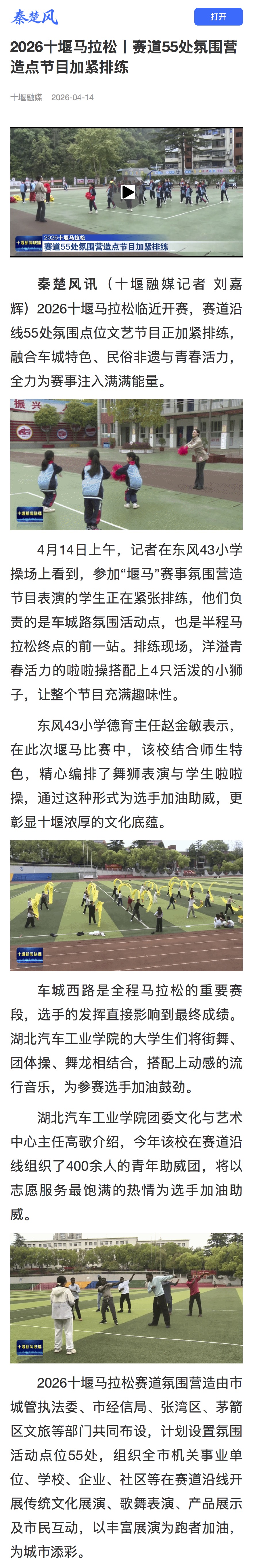 【十堰广电网】2026十堰马拉松丨赛道55处氛围营造点节目加紧排练